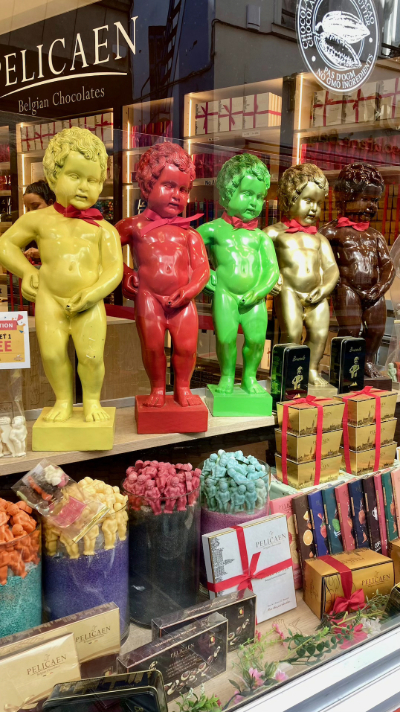 And explore we did. Our first day was spent wandering into the centre of town and discovering the famous Mannekin Pis statue in all its cheeky glory, the Mont des Arts and its lovely Jardin, the Musical Instruments Museum in a gorgeous art nouveau structure called the Old England Building, the leafy Parc d’Egmont, the government-y EU area, and beaucoup des bonbons (truffles from Chocolaterie Mary, pralines from Neuhaus, speculoos from Maison Dandoy, macarons from Pierre Marcolini, cuberdons from La Belgique Gourmande…). An added bonus was all the Weimaraner dogs we saw – a reminder of my lovely childhood dog Chloë.