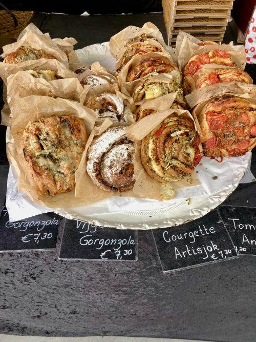 Our first full day was topped off with homemade chicken noodle soup (all Sean’s doing) and a warm bath, so I was ready, and even *sort of* willing, to go for a run the next morning before enjoying coffee and breakfast at a park-side bistro. Sean and I went for a run many mornings in Antwerp – the most memorable one being the time we happened across a cool vintage market right in the centre of the gorgeous Grote Markt square. We would have stayed for much longer, ogling all the tables of wares, had we not needed to finish our jog! The same morning, we also ran past the tiny Goossens Bakery with windows full of remarkable pastries; I of course snapped a photo so I could return at another time to load up on delectable almond croissants, apple tarts, pistachio buns and traditional cookies.