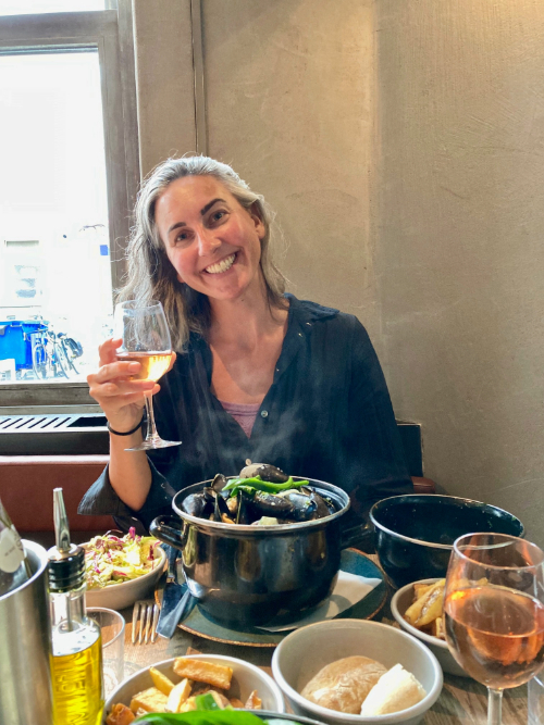 We were spoiled for choice of places to eat and drink in Antwerp. All of them seemed to have lovely patios for outdoor seating, which is one of the things we loved most about the city – there were people out and about all the time enjoying life and beautiful food and each other’s company. The city’s sidewalk café / bistro / apéro game is strong. Our first dinner out was at the cute little Nova Pinseria in our neighbourhood, and our last at Afghan soul food restaurant Delrobah. The kids were given free, freshly made stroopwaffels from a street vendor one day (it’s incredible how they can slice those thin waffles in half so well!). We loved the Levantine street food at Boker Tov and the impeccable, gorgeous vegetarian fare at And/Or. Late afternoon snacks and bevvies at Giraffe were enjoyed once or twice. We ate a yummy brunch at Butcher’s Coffee and the most incredible (and huge!) pots of steaming mussels at Fiskebar with sides of perfectly golden Belgian frites and an excellent rosé. I stopped for a very tasty baguette sandwich and perfect almond croissant at Domestic while wandering one day. And we found the little gem Botellón during a run, and ended up returning a few times over the course of our time in Antwerp. The owners, Sarah and Ivo, were lovely to chat with, and the food and drinks were delicious. According to Grace, Sarah makes the best granola she’s ever had, and Ivo gave us lots of new travel destinations to dream about. I think we will need to quit our Victoria life and travel full-time to experience all the wonderful places on our ever-growing list… perhaps Antwerp can be a European base 😉
