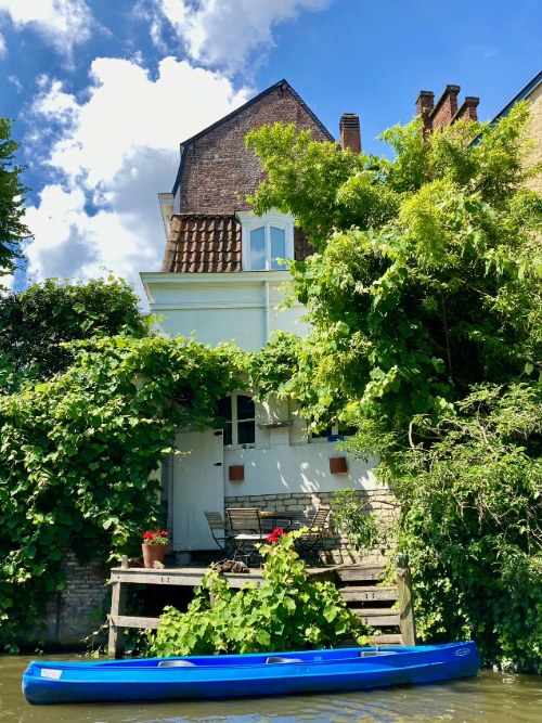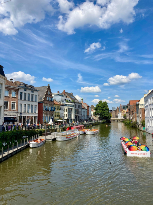 The day we travelled to Ghent was beautiful; warm weather and lots of sunshine. The train was relatively quick and once we arrived, we took a tram to the centre of town. Once oriented, our first stop was the beautiful Aux Merveilleux de Fred bakery where I experienced my first cramique (a traditional Belgian brioche loaf). It did not disappoint. Appropriately fueled by pastries and warm drinks, we decided to hop onto a canal tour. The little canal boat was a picture-perfect way to view the town – it was beautiful to see the rows and rows of old homes that looked like they emerged straight from the water, and cool to see infrastructure features such as the ancient bridges and retaining walls from that point of view. The boat guide delivered all of his information in not one, not two, but three different languages! We’ve often commented that having English as a first language enables us to be a bit lazy when it comes to linguistics… in places we’ve travelled that don’t have English as their primary language, many people know it as a learned language and so we’ve been able to get by in *almost* every situation not knowing too much else (I know a bit of French, Spanish, and Italian, but not enough to be conversational). So, we always try to learn a few basics, at the very least, in the language of our travel locations.