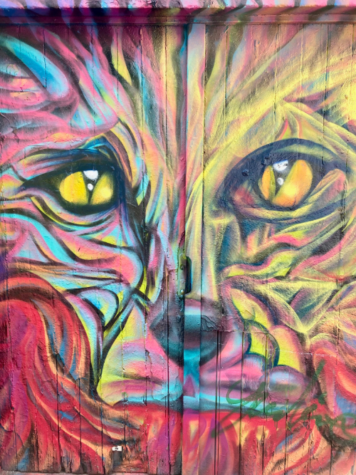 Once we’d wandered all through the castle, we further sustained ourselves with Belgian frites (served traditionally with mayo, but the place we went also boasted myriad other dipping sauces) and bubble tea slushies to beat the heat before wandering through the town’s graffiti alley. Kieran was thrilled to see some sprayed Pokémon characters and I liked the range of talent showcased, from first-time tags to multi-coloured masterpieces.
