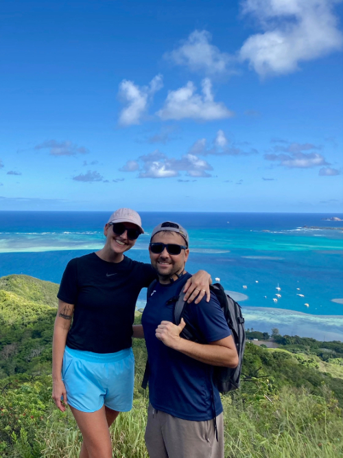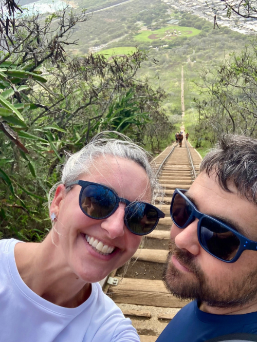 We have the most delicious hazelnut coffee beans at our apartment, so every morning starts with a big mug of Earl Grey and then onto a hazelnut coffee with chocolate protein milk which tastes like a delicious mocha and sets me right for the day. It was well-needed today as the kids had online meetings with their school to assess their progress (or lack thereof, ahem) for re-entry into classrooms come January. I couldn’t listen; I was so nervous. The homeschooling has probably been the most difficult / stressful part of this whole year, followed closely by the sheer amount of time we are all together. To remedy the latter, I found a sitter on a local Facebook mom’s group here and today she came by for the first time. The kids were not at all sure of the set-up but as soon as we met her, we were all smitten. Sean and I used the free hours to head up Koko Head Tramway which is a very steep set of old railway ties that leads directly up to the top of Koko Crater. Man, oh man… so hard. And scary! One part was a bridge of sorts where there was just empty air below the ties, and in some parts one tie was gone resulting in an extra-steep, extra-wide step. There were two local guys in front of us who were playing music from a portable speaker and thank goodness, as those beats helped me keep putting one foot in front (above?) another at times. I thanked them at the top and we got to chatting; they are local hiking buffs, so we swapped some stories and got some recommendations. The wind at the top was unreal – I got some footage on my phone of the wind absolutely whipping my shirt and hair around. The views were unreal as well – over 180 degrees of mountain, coast, crashing surf, and azure infinity. It hit me that we sailed out over this exact part of the Pacific, heading home at the end of our offshore adventure with SALTS, many years ago.
