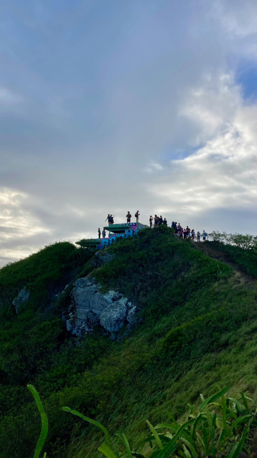 We set alarms for 6 AM (!!) to hike the Ka’iwa Ridge (Lanikai Pillbox) Trail with the Oahu Hike Club. It was a perfect morning: a little breezy, not too hot. We walked to the trailhead and met some fellow hikers before starting up the windy little trail. It was steep! Met some nice people from Chicago, Cali and NY – lots of people we talk to seem to be living here but from somewhere else. We had been at the top pillbox (an old observation bunker from WWII) for maybe two minutes before a total downpour started. Everyone huddled on the leeward side of the pillbox and like usual on this island, the rain stopped within a few minutes. It left behind the most distinct rainbow Sean and I have ever seen – we could see its full arc and it looked near enough to touch, so magical. I was worried about the path down being slippery (I dislike descents more than ascents at the best of times) but it was fine. Breakfast and coffee back at home was all the more delicious thanks to our morning efforts!