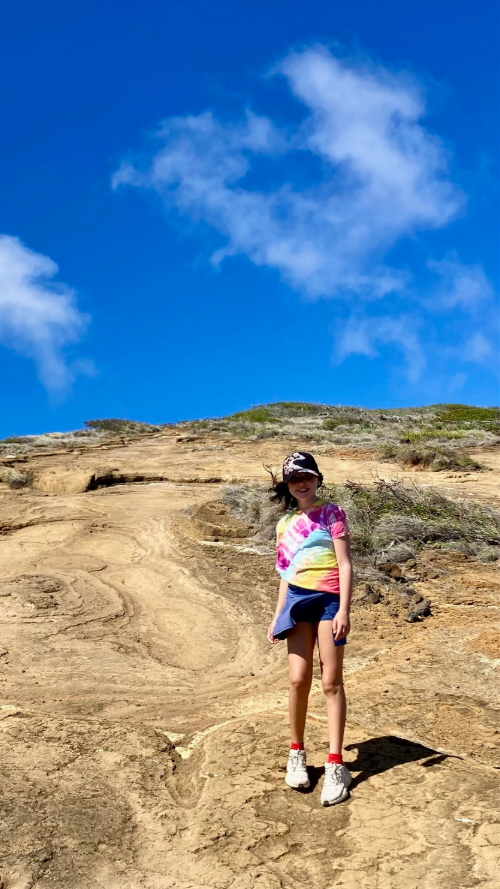 Such a busy, exhausting day! Started with an excellent ‘ropes’ gym class at UFC with the most wonderful trainer, Caroline, who is inspiring and helpful and great at cuing and who cares first and foremost for safety and form. That was followed by a quick smoothie (kids) and protein balls (adults) in the car while driving to the Hanauma Bay ridge hiking trail. We parked at Koko Head and walked across the highway, as per the instructions in AllTrails. The hike started out tame on a paved service road, steep but consistent. We didn’t realize our good timing until we were up a ways, but the bay is closed to visitors on Tuesdays so the view down onto the beach was pristine with nobody there. Near the uppermost point the paving ended and we ventured over some packed earth before tracking down onto another rocky outcropping; it looked like the surface of the moon and we had to watch our step lest we slip on the small gravel and sand that accumulated in the crevices. The kids liked seeing bits of lava rock poking out from the ground. The view from the furthest point out was wild – we could see all the way back into the bay and to the beach, as well as to the crashing waves along the coast and out to sea. I kept remarking on the gorgeous hues of blue in the bay and realized that although we have seen a lot of beautiful oceans this year, I never, ever get tired of those colours, from sapphire to azure to aquamarine to cerulean. The ascent back out was a bit more than we bargained for in terms of gradient – the kids were awesome but man, even I thought I wasn’t going to be able to take another step once or twice! The rock was also radiating the sun’s strong heat back onto us and I was very glad we had hats, lots of water, and sunscreen. Lunch was a very rushed affair in the car as I had signed up for an afternoon yoga class; the less said about that, the better. It was a hot yoga ‘sculpt’ class and I felt like I had entered the seventh circle of hell as soon as the instructor started yelling. Sooo hot, sooo aerobics-y, no yoga. Ugh.