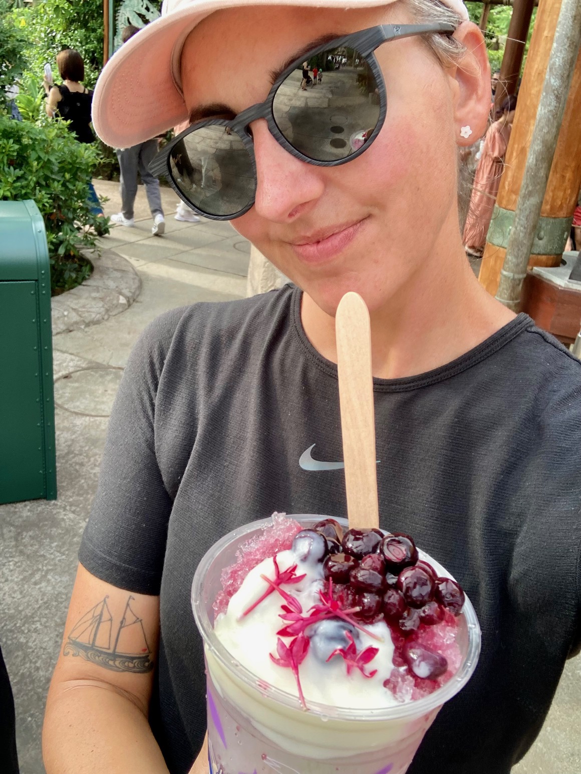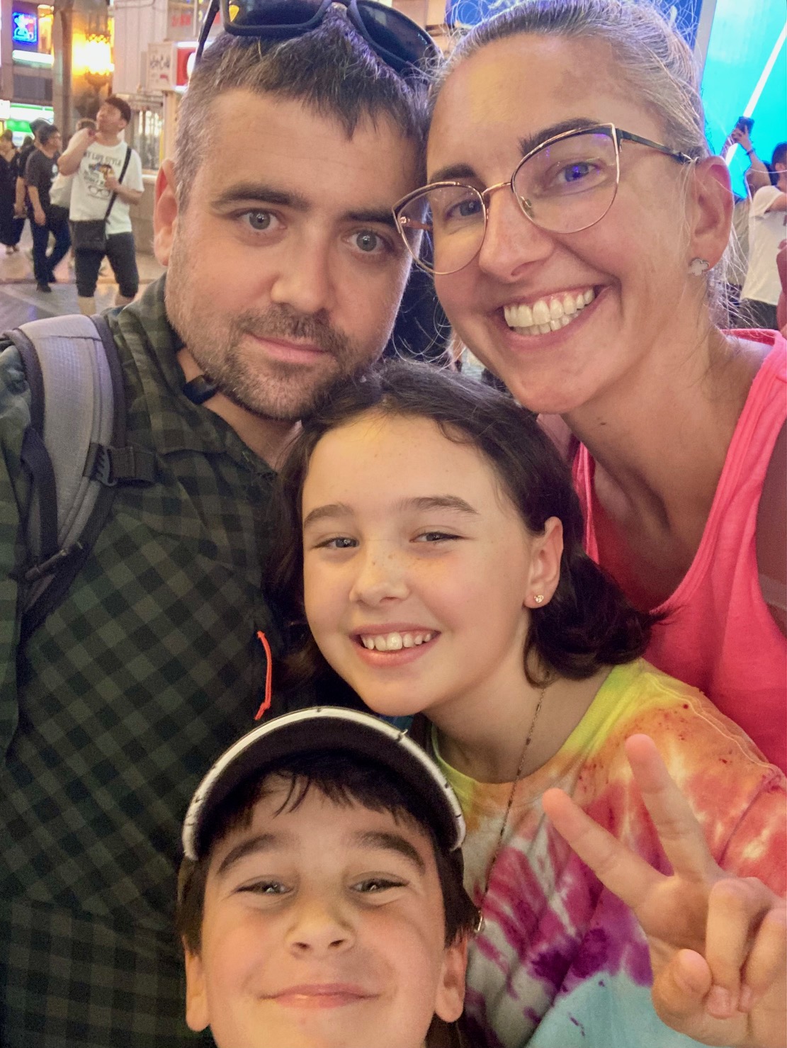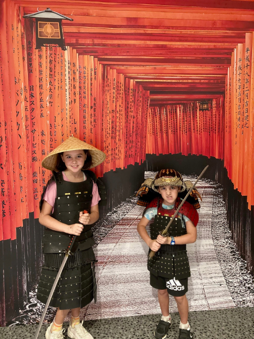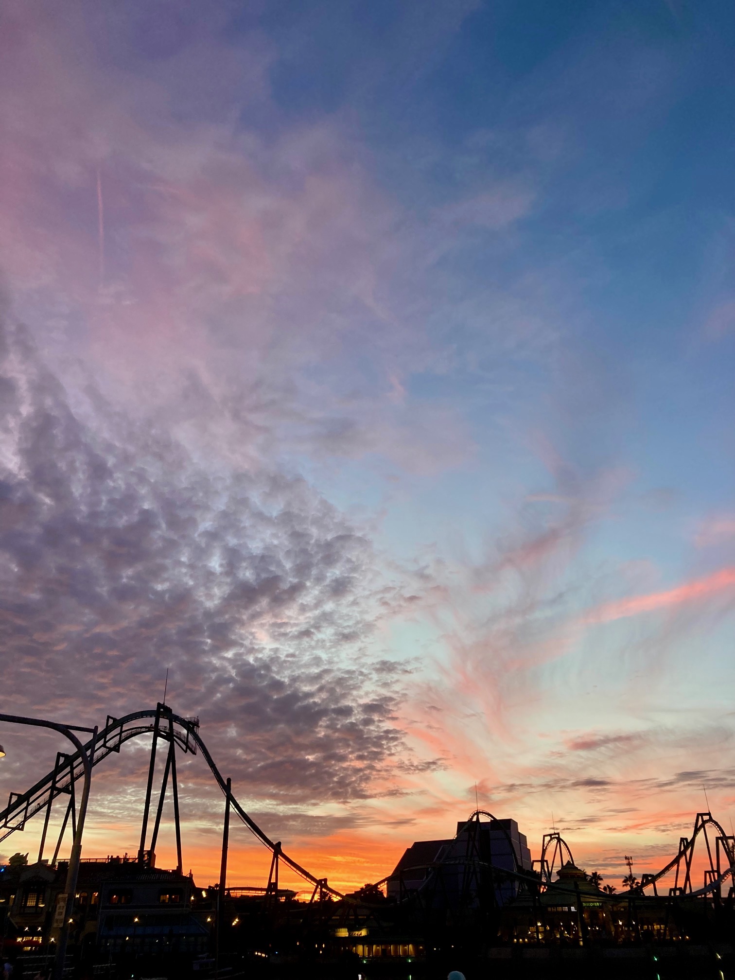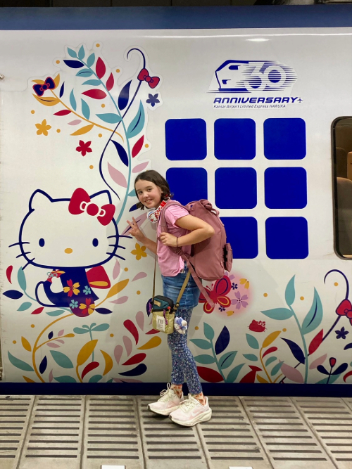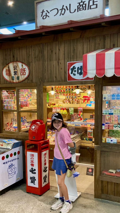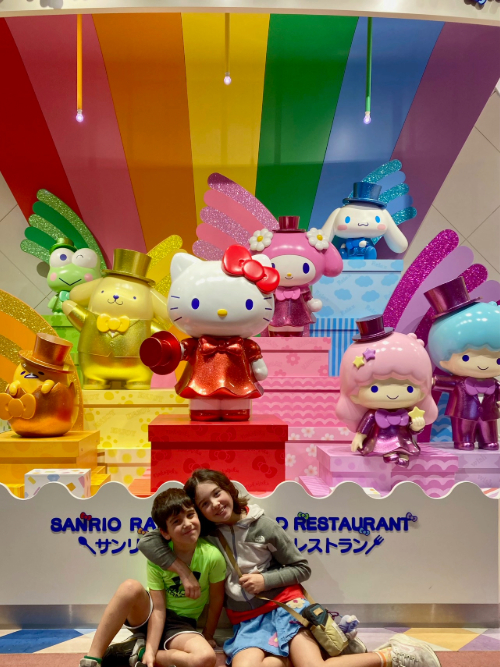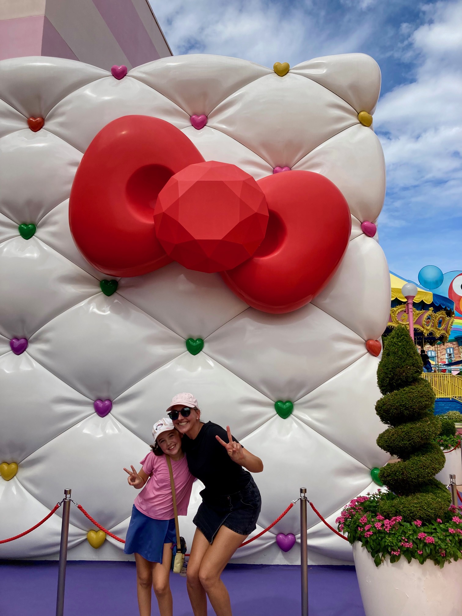 The day at the amusement park was so joyful. We tried on many silly hats in the stores and took way too many selfies in front of Hello Kitty installations. We devoured Kuromi churros and slushie boba drinks and something called a Danish pizza (tasty, and decidedly not healthy). The day felt like the hottest one yet in Osaka; I don’t think there was a time that I couldn’t feel sweat trickling down the small of my back, so we made sure to drink lots of cold beverages and duck into shops between rides. The kids adored the Minions ride (I didn’t love the over-an-hour-and-a-half-wait for it…) and we all loved the stunning pink and orange sunset. On the flip side, Grace was so distraught by the realistic stunts in the Waterworld show that I had to take her outside, and we didn’t even make it to Super Nintendo World, Jurassic Park, or The Wizarding World of Harry Potter (so big! So hot! Such sore feet!).