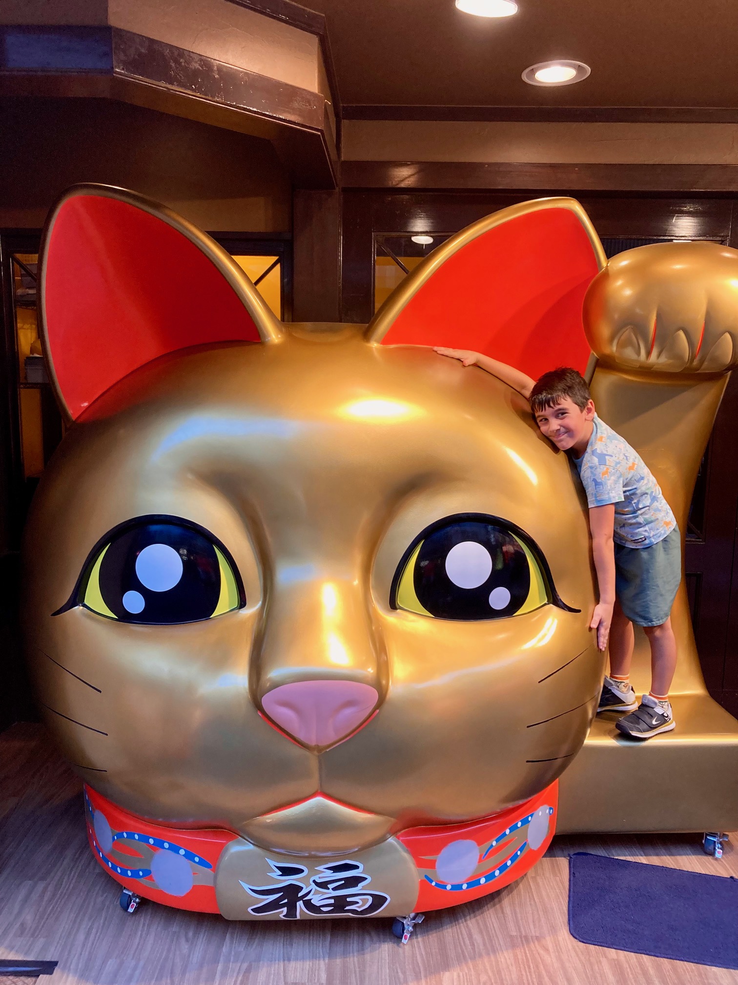 On one rainy day, we headed northwest to Sanrio Puroland. It is slightly embarrassing how happy those silly little characters make me, but I just read about the concept of kawaii which is more than just ‘cute’… the article I was reading described it as the feelings of caring and nurturance that are evoked by the childlike qualities of the kawaii aesthetic. So I’m owning my Hello Kitty obsession as an important aspect of my self-care ☺! Luckily, the kids are as into Hello Kitty, Pochacco, Keroppi, MyMelody, Badtz Maru et al as I am. We did the character boat ride, Cinnamaroll’s Great Adventure (which Sean won!), the bouncy castle, the MyMelody car journey, the themed lunches, the gift shops and the whole nine yards. We watched the ‘Kawaii Kabuki’ show which was great, with catchy costumes and dancing. And, we toured Hello Kitty Manor which was full of every imaginable photo op (for her 50th birthday!) and got to meet the Legend herself. By the end of the day, I was super overstimulated and done with the day (so much noise and colour! So many lights and people!) but we had a great time, and the kids even got ‘escorted’ back to the train station under the umbrella of a very kind lady who went out of her way to walk them right to the door so they could stay dry.