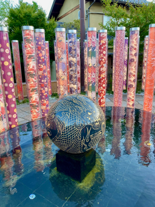 After all the excitement, we had a delicious vegetarian meal at musubi café before making our way back through the riverfront park area, through the striking ‘kimono forest’ installation shimmering in the growing dusk, and back onto the train to take us back to our tatami home.