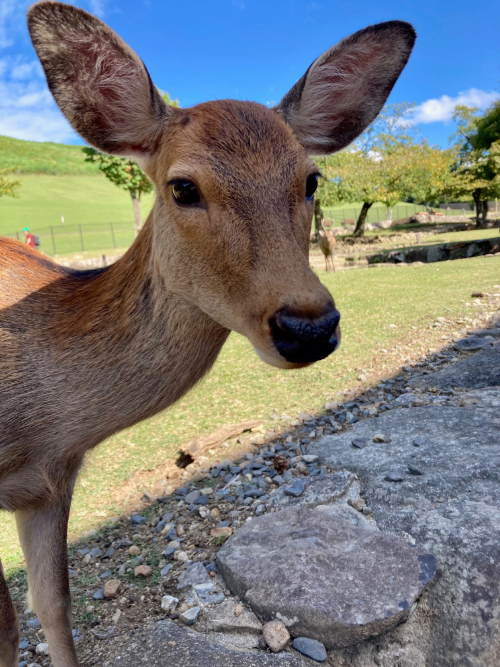 We live in Oak Bay, so we are no strangers to deer. In fact, we have a ‘pet’ deer who we’ve named Matilda who is always hanging out in our back yard. Oak Bay has a deer-tagging program and Matilda has big orange ‘earrings’ with a number on them, so we always know it is her. Even so… being in Nara was so lovely and so much fun for the kids (and the adults)!