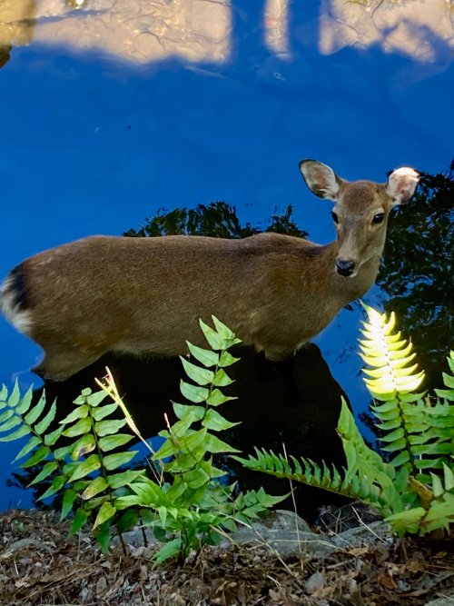 We had read that some of the deer have learned to bow their heads if you bow at them, which of course was the most adorable thing ever and which we were doing all day long. We took pictures of the many deer lounging in the canals and ponds to cool off. We saw the tiniest fawn towards the end of the day, and all had a little pat of its soft head. Sean had an empty wrapper in his pocket and ended up getting butted from behind by a buck with antlers – and it left a mark! The kids thought it was hilarious.