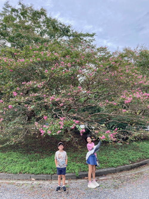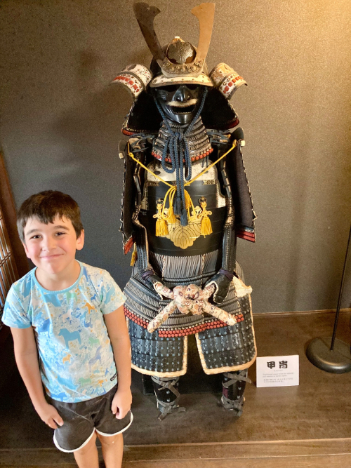 We completely lucked out during our time in Fujisawa: while researching a tea ceremony (after we missed the one we’d signed up for in Kyoto due to a logistics / planning mistake, oops) I came across the website for Houan Kitakamakura which only opens to the public for tea once a month. On a whim, I emailed for the upcoming Sunday, even though an online comment said it was all full, and we managed to get a reservation based on a cancellation. The whole experience was so magical: strolling past lush green ferns and bamboo from the train station, ducking through the small wooden gate, and stepping across mossy stones to the beautiful, simple architecture of the tea house felt removed from daily life. We got to go inside Musoan, the smallest tea house in all of Japan at just 1.75 tatami mats large. To enter, we crouched low to get through the tiny nijiriguchi half-door (which apparently is designed to indicate all are equal inside the space, having all had to lower heads upon entering). Inside, it had a small shrine of calligraphy, seasonal branches and flowers, and a huge, circular moon window taking up one whole wall. Soooo special and beautiful! After crawling back out of the Musoan space as gracefully as possible, we got to enjoy matcha tea in lovely pottery matcha cups, and a traditional Japanese sweet shaped like a perfect chestnut, made of chestnut and red bean pastes. Afterward, we checked out a lovely little market selling homemade goods (I bought some lovely hand-printed postcards… because of our packing situation, we can’t buy souvenirs, so I’ve been buying a ton of beautiful postcards and writing up a storm instead) and had great coffee + a mango- and passionfruit-topped waffle at Verve. After a quick lunch of Grace-made sandwiches at home, we were off on our bikes to the Surf Village festival, though issues with tire air pressure and Grace’s bike chain – again! – meant we got there near closing. Nevertheless, we enjoyed the atmosphere, some cotton candy, a pony ride, and a mini petting zoo including a baby cow, bunnies, goats, guinea pigs, and a creepy blue/green snake which looped around the kids’ necks (and which I managed to touch with one finger after I built up enough courage). Then, because we hadn’t had enough of festivals, we pedaled on to the Hug Animals festival at Tsujido Seaside Park just as a downpour started. We saw some lovely dogs (we’re obsessed with mini Shiba Inus!) but the highlight for the kids was the park’s Transportation Village where they rode a little car around an elevated track. The busy day finished off at Kua Aina for burgers and the BEST tuna and avocado sandwich before heading home to dry off and rest up.