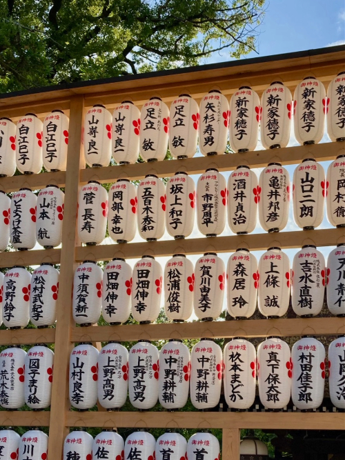 From the Ryoan-ji complex we walked some more to the Kitano-temmangu Shrine for the last day of the Zuiki festival, which gives thanks for bountiful harvests. The focal point of the festival is a portable shrine (omikoshi) decorated with citrus, peppers, pumpkins, flowers, taro stems, lotus pods, and other dried fruits and vegetables. We unfortunately arrived too late to see its arrival, but we did watch eight children in traditional hair, makeup, and kimono dress perform a solemn Yaotome dance in closing ritual. After the dance, we wandered the temple grounds which were lovely – gardens with meandering streams and small stone bridges, various small, colourfully painted shrines and outbuildings, and huge walls of hanging red, white and black lanterns. The setting sun was glinting through the translucent paper, making it a pretty special scene. To end the day off, we stopped for maccha soft serve from Kitano Harutsuge for the walk home. A big day and a good one.
