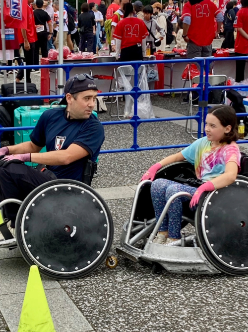 We are loving Fujisawa and its laidback coastal lifestyle. However, Saturday took us on a day trip to Yokohama for a Japan Brave Blossoms v. New Zealand All Blacks rugby game. I spent the morning watching YouTube videos to learn the game’s basics; I’m embarrassed to say I knew very little about the sport before. We left just before noon to catch three or four trains (I lost count…) to Japan’s largest arena, Nissan Stadium, which holds 70,000 fans. We knew we were on the right track when we started seeing the red and white jerseys on the second train, and a surprisingly large amount of All Blacks gear as well. We followed the crowds to a fun pre-party in the park where we participated in interactive games to help us understand visually impaired rugby (throwing the ball wearing goggles representing different forms of sight loss) and wheelchair rugby (wheeling a chair through slalom cones and then being slammed into by a player in his chair… at a very high speed!).