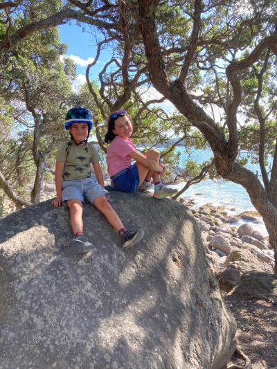 Besides walking/scootering, gym-going and eating, how did we spend our days? Sean and the kids took two surf lessons which they loved; I also loved the free time to go for a giant walk without anyone talking to me. We spent an afternoon at the Mount Hot Pools which was dreamy. We spent many hours at the Grace Avenue playground which was an awesome park as well as being ‘named for me’ as G liked to say. The kids did a clip ‘n’ climb session at Rocktopia. G and I got pedicures one afternoon. We walked over to Leisure Island, did the base track around Mauao, as well as up to its summit (stunning near-360 views). We swam in the pool and dipped in the hot tub at our Airbnb. And we watched 2.5 of the three Lord of the Rings movies – don’t tell me how it ends!