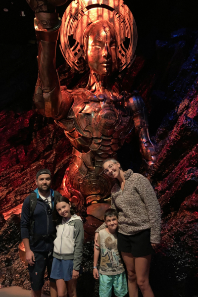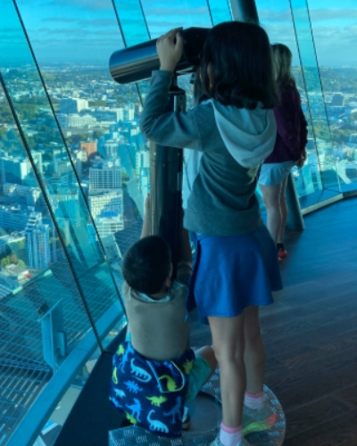 Our first impressions of Auckland were of so many gorgeous green spaces. Our Airbnb was right in the Central Business District (CBD), a 7-minute walk from SkyCity, but on a quiet, leafy, lovely side street. We roughly planned out the week after checking in and getting groceries, deciding to do the Wētā Workshop tour, the All Blacks Experience, and a Sky Tower visit on our first full day. Such a touristy day! Both kids said the interactive rugby drills during the All Blacks tour were their favourite parts. Sean liked learning more about the hakas performed by the All Blacks (the Ka Mate, composed by Chieftain Te Rauparaha in the early 1800s) and by the Black Ferns (the Ko Ūhia Mai, composed by Elder Whetu Tipiwai in 2006). My favourite part? Probably seeing a 360-degree panorama of the city from the Tower’s 186 meters up.